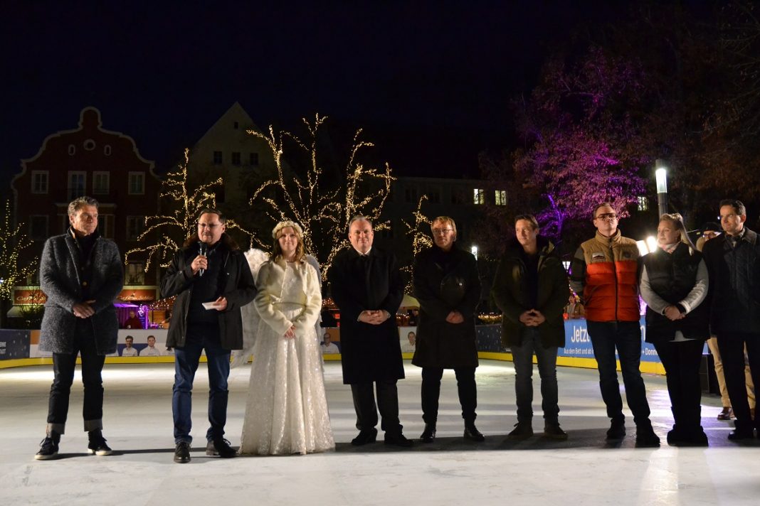 „Es ist die richtige Antwort auf die Herausforderungen der Zeit!“ Das betonte Ingolstadts Oberbürgermeister Christian Scharpf bei der Eröffnung der Eisarena am Schloss. Die richtige Antwort auf die Energiekrise heißt in diesem Fall aus Kunststoff. Der bildet nämlich erstmals in Ingolstadt den Untergrund für die Schlittschuhläufer, nachdem in den Vorjahren Echteis auf den Paradeplatz gezaubert wurde. „Der Kunststoff wird kritisch betrachtet,“ ist sich Andreas Mayr vom Netzwerk „Familienunterehmen für Ingolstadt“ im Klaren. Aber machte bei der Eröffnung auch deutlich: „Die Alternative wäre gewesen, nichts zu machen.“ Aber die Unternehmer seien es gewohnt anzupacken und anzuschieben – auch in Krisenzeiten.