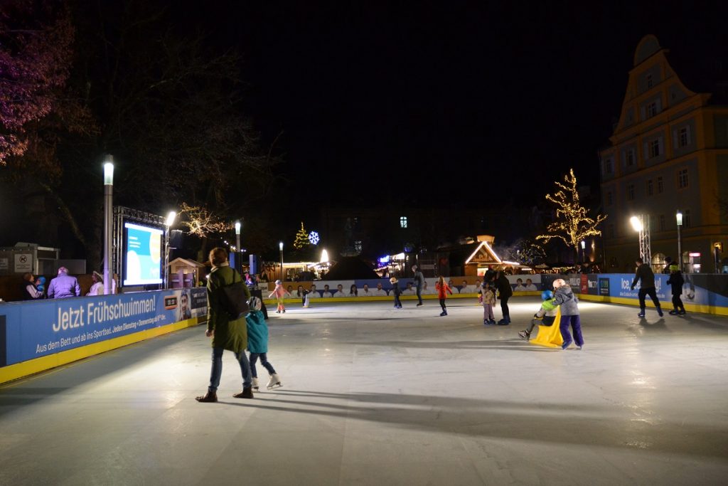 „Wir können das nicht verantworten in Zeiten der Energiekrise“, hat dazu auch Reinhard Büchl, Sprecher und Initiator den Netzwerks „Familienunternehmen für Ingolstadt“ gegenüber Bayern mittendrin betont. Der Kunststoff muss eben nicht energieintensiv gekühlt werden und er eignet sich für alle Wetterlagen. Um die – kostenlos nutzbare Eisarena – tummeln sich Buden und Hütten mit Heißgetränken, deftigen und süßen Spezialitäten, so dass auch der Nicht-Eisläufer auf seine Kosten kommt. „Der Paradeplatz wird durch die Eisarena und die Hütten aufgewertet,“ meinte denn auch OB Scharpf, der übrigens um Verletzungen zumindest bis zur Stadtratssitzung im Dezember zu vermeiden, keine Runden auf der Eisbahn drehen wird. Musikalisch eröffnet wurde die Eisarena im Übrigen von Sofie Fürbacher (Kunstzentrum Besondere Menschen).