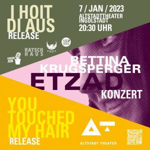 Das Ingolstädter Altstadttheater startet mit zwei besonderen Konzerten in das neue Jahr. Am Samstag, 07.01. um 20.30 Uhr steht die Hepberger Liedermacherin Betty Krugsperger mit ihrer Band auf der Bühne in der Kanalstraße. In ihren Singer-Songwriter-Stücken berichtet sie auf englisch und bayrisch mit tiefgründigem Humor von den kleinen und großen Dingen des Lebens. Für alle, die es skurril und erkenntnisreich zugleich brauchen.