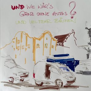 Die Bilder, die zum Eichstätter Kulturwochenende entstanden sind, bringen konkrete Bedarfe und Wünsche zum Ausdruck. Sie betreffen zum Teil sehr konkrete Herausforderungen wie die Müllvermeidung in der Innenstadt, barrierefreie Gehwege, gerade dort, wo in der Altstadt Kopfsteinpflaster liegt, das Sport- und Freizeitangebot oder die „Semmeltaste“ für Kurzparker. Andere Bilder visualisierten abstraktere Vorstellungen einer begrünten Stadt, den Erhalt der Artenvielfalt oder die Hoffnung darauf, dass Ausgrenzung und Diskriminierung durch einen offenen, integrierenden Umgang der Menschen miteinander wieder stärker zurückgedrängt werden können.