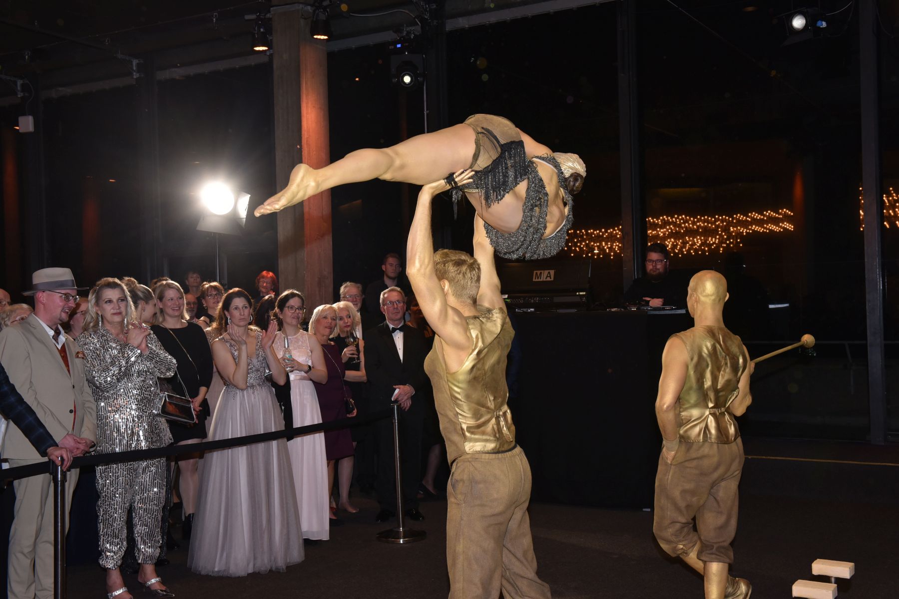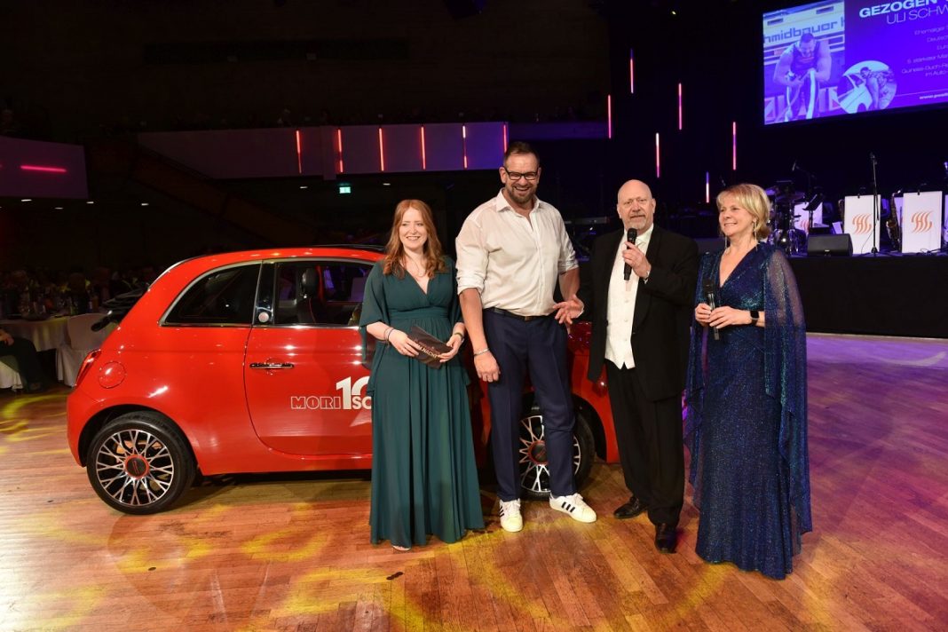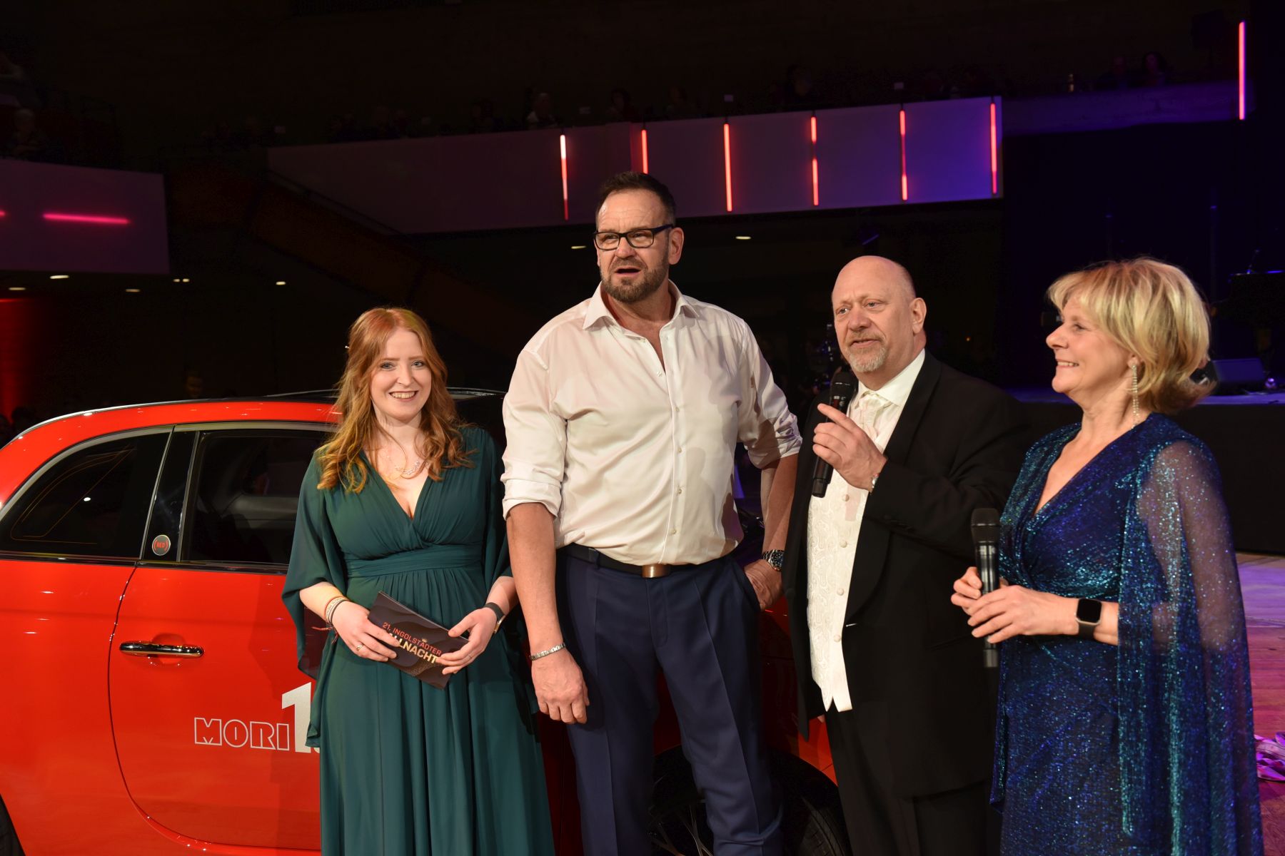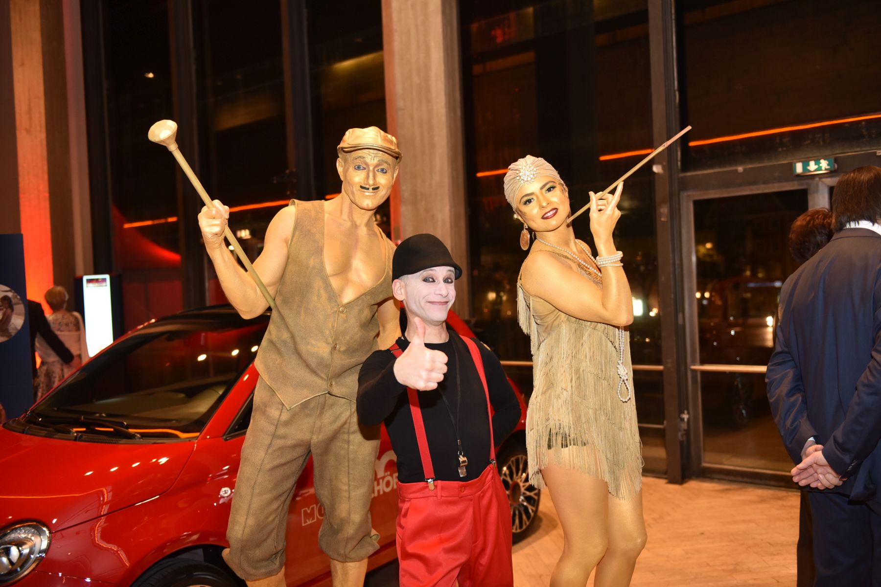 Kleines Auto – großer Aha-Effekt: In einem Fiat 500 kam das Organisationsteam der Ingolstädter Ballnacht angerollt. Dabei war es pure Muskelkraft, die das kleine Kult-Auto samt drei Personen „Inhalt“ in den Festsaal des Stadttheaters zog. Was für ein Auftritt von Strongman Uli Schwarz, dem Neuen im Orga-Team. Aus dem – wie es sich für eine SPD Veranstaltung gehört roten – Gefährt stiegen Nadine Praun, Sylvia Schwarz und Klaus Mittermaier, die die Gäste und insbesondere Oberbürgermeister Christian Scharpf herzlich willkommen hießen. Damit war der Startschuss für eine prachtvolle Ballnacht gegeben, die rund 1600 Gäste angelockt hatte, darunter auch etliche Fans des legendären Orchesters Hugo Strasser. Dieses sorgte im Saal für den perfekten Sound. In die goldenen 20er Jahre wurden die Gäste von „LaMetta“ entführt – Herr Utz, Herr Ans und Frl. Anni brachten als lebende Kunstwerke die Ballbesucher und Ballbesucherinnen zum Staunen.