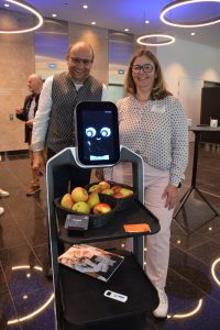Heimlicher Star der Veranstaltung war Serviceroboter Jamie, der Obst und mehr servierte und dazwischen schon mal ein Tänzchen hinlegte. Er – oder sie – ist einer von zahlreichen Robotern, die bei Beckerrobotics entwickelt werden. Firmeninhaber Rainer E. Becker erläuterte die Möglichkeiten, diese künstlichen Kollegen in Hotellerie und Gastronomie einzusetzen. „Sie können mehr als Schnitzel an den Tisch bringen“, betonte er. Auskünfte erteilen, Buchungen, digitale Meldescheine ausfüllen, dolmetschen, Bewertungen abgeben, Umfragen durchführen – das und mehr hat so ein kleiner Alleskönner drauf. Und es gibt auch Modelle, die z.B. Getränkeautomaten enthalten, Zimmer reinigen oder die Spülmaschine einräumen. Den Einsatz dieser Helfer versteht Rainer E. Becker als Entlastung und Wertschätzung der Mitarbeiter.