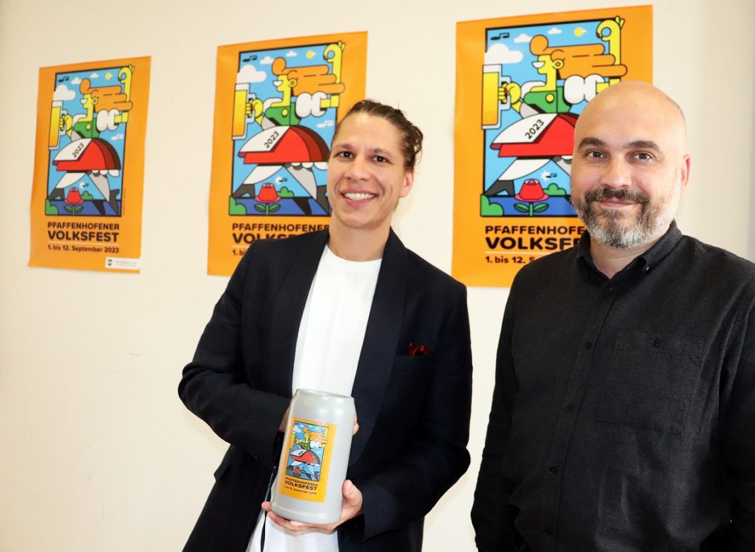 Das Volksfest-Plakat, das in den letzten Jahren bereits von Künstlern und Grafikern wie Christoph Ruckhäberle, Herbert, Klee, Ferdinand Haschner und Sebastian Schwamm gestaltet wurde, soll auch in 2024 ein Motiv eines regionalen Künstlers zeigen.