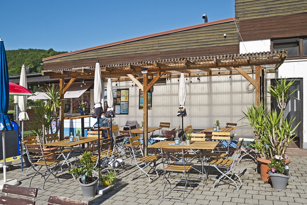 Ergänzt werden Schwimmbecken, Liegewiesen und Co. durch einen Kiosk samt öffentlichem Biergarten, der auch ohne Mitgliedschaft von jedermann genutzt werden kann. Beim Wirt Axel Ponanta bekommt man neben Erfrischungsgetränken, Eis und den klassischen Freibad-Pommes auch Speisen wie Schnitzel, Pizza oder Currywurst. Und man kann sogar mit eine Cocktail den Sonnenuntergang im Urdonautal genießen.