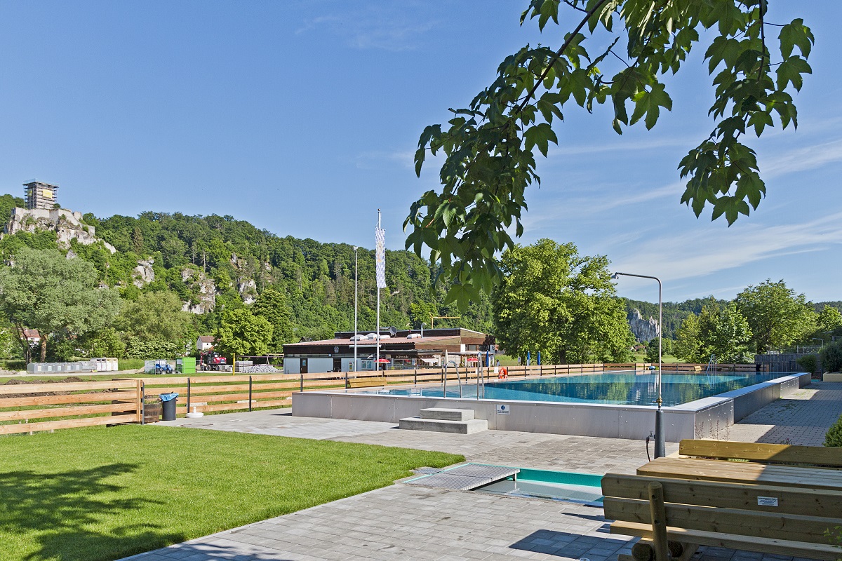 Das Wasser glitzert im Pool, der Blick schweift hinüber zur Burgruine (gut, die ist momentan eingerüstet) und im Kiosk wartet schon eine Portion Pommes darauf, verzehrt zu werden. Es ist echtes Urlaubsfeeling, das sich hier im Schutterbad in Wellheim einstellt. Endlich wieder. Nach einer vierjährigen Zwangspause und dank einer „Reanimationsmaßnahme“ durch engagierte Ehrenamtliche.