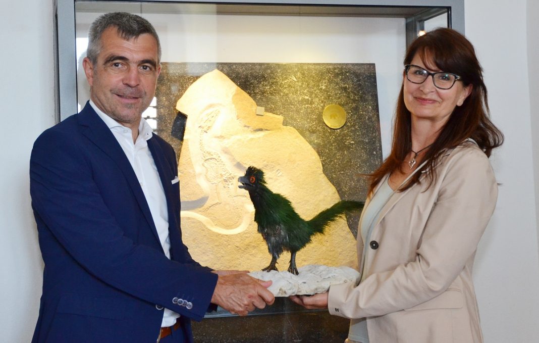 Dabei hatten es die Kooperationspartner dieses im wortwörtlichen Sinne Modellprojekts sehr spannend gemacht. „Sie wissen noch nicht genau, warum Sie hier sind und ich sag´s Ihnen auch nicht!“ Mit diesen Worten begrüßte Museumsleiterin Dr. Christina Ifrim die Gäste im Jura-Museum. Ein Rockstar des Museums sollte noch größer rauskommen – so viel stand fest. Dass es sich wohl um den Juravenator handeln würde, verriet im Anschluss der erste Vorsitzende des Tourismusverbands Altmühltal und Eichstätter Landrat Alexander Anetsberger: „Er zählt zu den Top drei der besterhaltenen fleischfressenden Dinosaurier.“ Als neues Highlight in der musealen Aufarbeitung würden sich nun zwei Modelle des Raubsauriers „anschmachten“ – eines auf der Burg und eines im Altmühltal im Infozentrum (das im Übrigen auch eine neue Dinosaurierwand bekommen wird).