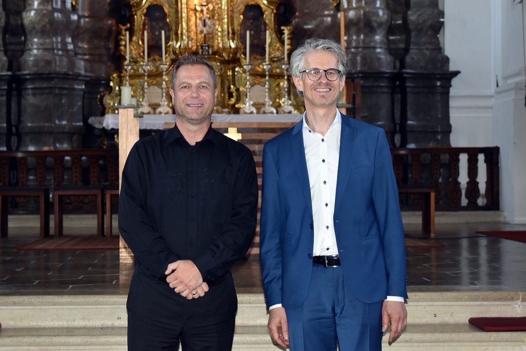 Am späten Nachmittag um 17 Uhr wird der Festtag gekrönt mit einem Orgelkonzert von Startrompeter Hans Jürgen Huber, der an der Orgel begleitet wird von Franz Günthner, welcher seit November 2011 als Regionalkantor der Diözese ROTTENBURG-STUTTGART für die Bezirke Allgäu, Oberschwaben und Bodensee und für die Kirchenmusik an der Stadtkirche St. Martin verantwortlich ist. Erst kürzlich war Hans-Jürgen Huber auf BR-Klassik zu hören. Der Bayerische Rundfunk hatte am 11.8.2024 ein Konzert im Liebfrauenmünster Ingolstadt, bei welchem zwei Werke seines Orgelpartners Naju Hakim zur Uraufführung kamen, aufgezeichnet und gesendet.