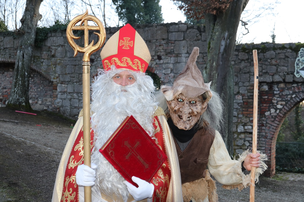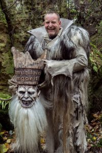 Neben den Perchten ist es auch die Gestalt des Krampus, die bei den Bergdeifl`n eine wichtige Rolle spielt. In der Adventszeit werden die Vereinsmitglieder gerne als Nikolaus/Krampus Duo gebucht. Und der Begleiter des Nikolaus war es auch, der Josef Wagner als Kind beeindruckte: „Ich habe mich gefragt, wer da ans Fenster klopft. Was ist der Krampus? Um was geht es da?“ Zu erkennen ist der Krampus an einem weißen Fell, einem Paar Hörner und einer Maske mit menschlichen Zügen wohingegen die Perchten zwei Paar Hörner oder mehr vorweisen können.