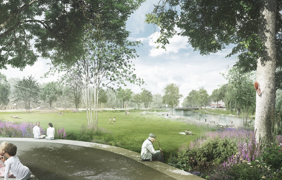 Die freie Liegewiese als Gegenüber zum neuen Stadtbaustein wirkt als willkommene räumliche Ergänzung. Sozial wichtige Bestandsräume wie das Beachvolleyballfeld sind gekonnt integriert. Besonders erwähnenswert sind die sensiblen Erschließungswege, die Bürgerpark und FFH-Fläche gekonnt inszenieren, und gleichzeitig einzigartige wie ruhige Orte anbieten. Die Zugänglichkeit und Interpretation der vielfältigen Gewässer zeugt von einem gekonnten Umgang, der für verschiedenste Bevölkerungsgruppen und Altersstufen neue Erlebniswelten in bekannter Umgebung ermöglicht. (lgs)
