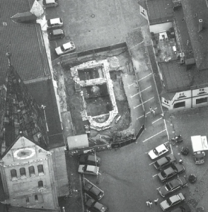 Die Überreste der romanischen Nikolauskapelle waren in den 1980er-Jahren bei Grabungen unter dem Pflaster zutage getreten. Damals wurden die Funde dokumentiert und die Fundamente des ehemaligen Gotteshauses wieder fachgerecht verschüttet. 2025 hat der Stadtrat beschlossen, die Umrisse der Kapelle im Zuge der sanften Umgestaltung des Platzes wieder sichtbar zu machen. Eine Informationstafel direkt neben dem Grundriss wird künftig mehr darüber erzählen. Mehr Informationen zur Gestaltung gibt es auf www.eichstaett.de.