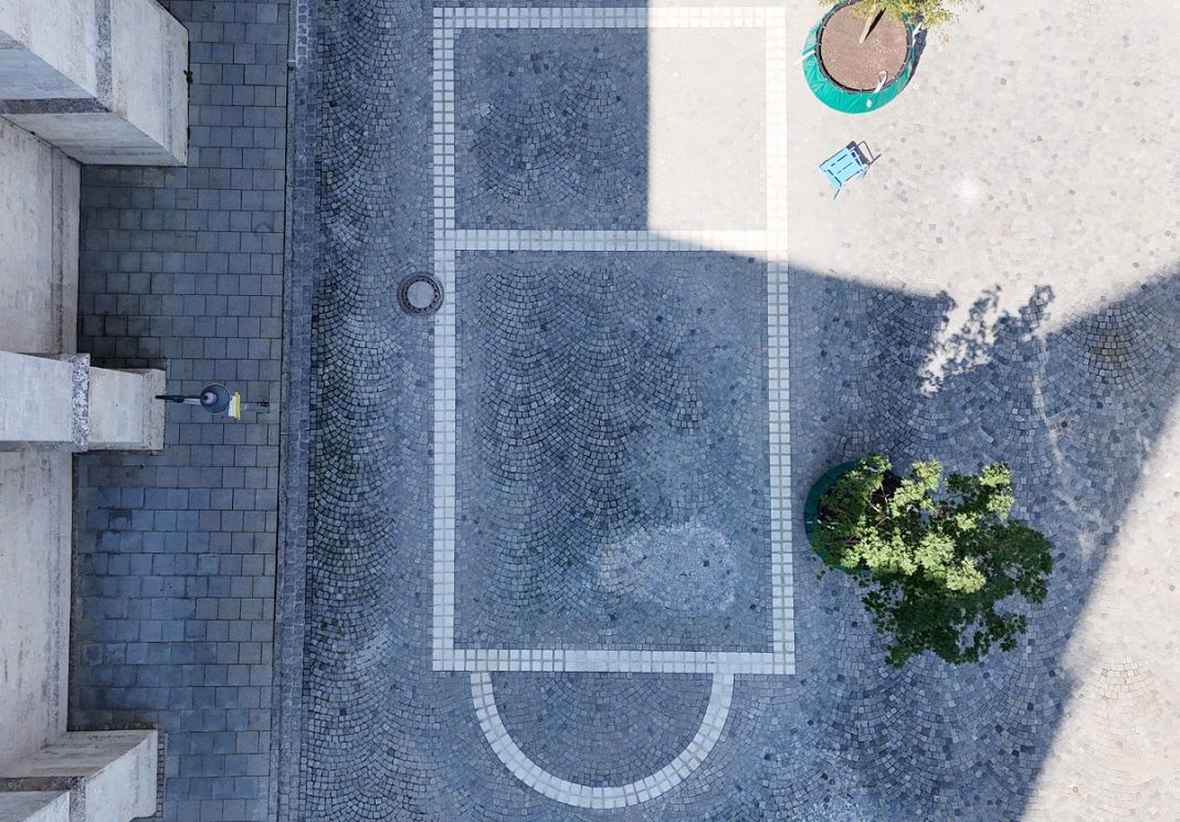 Der gepflasterte Umriss der historischen Nikolauskapelle auf dem Domplatz ist fertiggestellt. Nun können alle anhand des farblich abgehobenen Steins nachempfinden, wo die ehemalige Kapelle unter der Erde noch heute liegt.