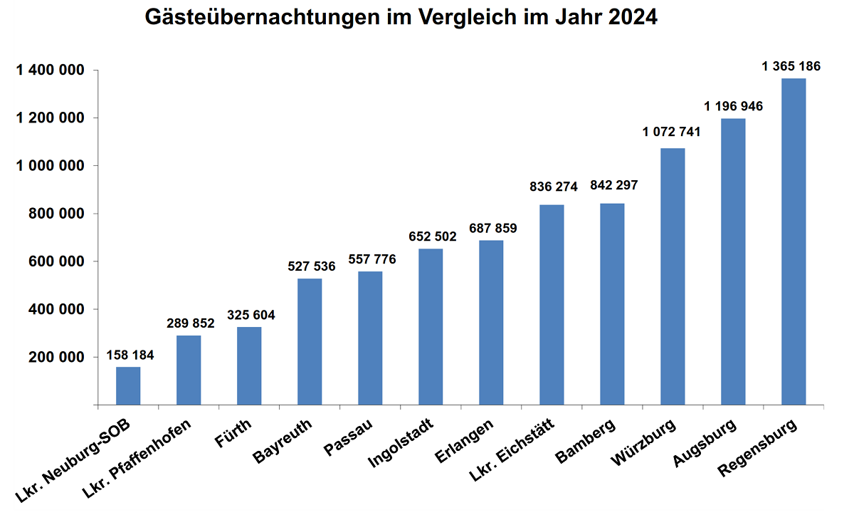 Im Vergleich mit anderen bayerischen Städten liegt Ingolstadt bei den Gästeübernachtungen im Mittelfeld.
