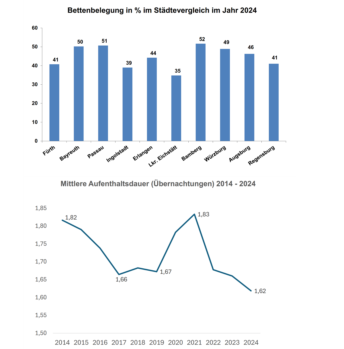 Die Aufenthaltsdauer der Gäste lag im Mittel der letzten Jahre bei rund 1,7 Übernachtungen. Im Jahr 2024 lag der Mittelwert bei 1,6 Nächten je Gästeankunft.