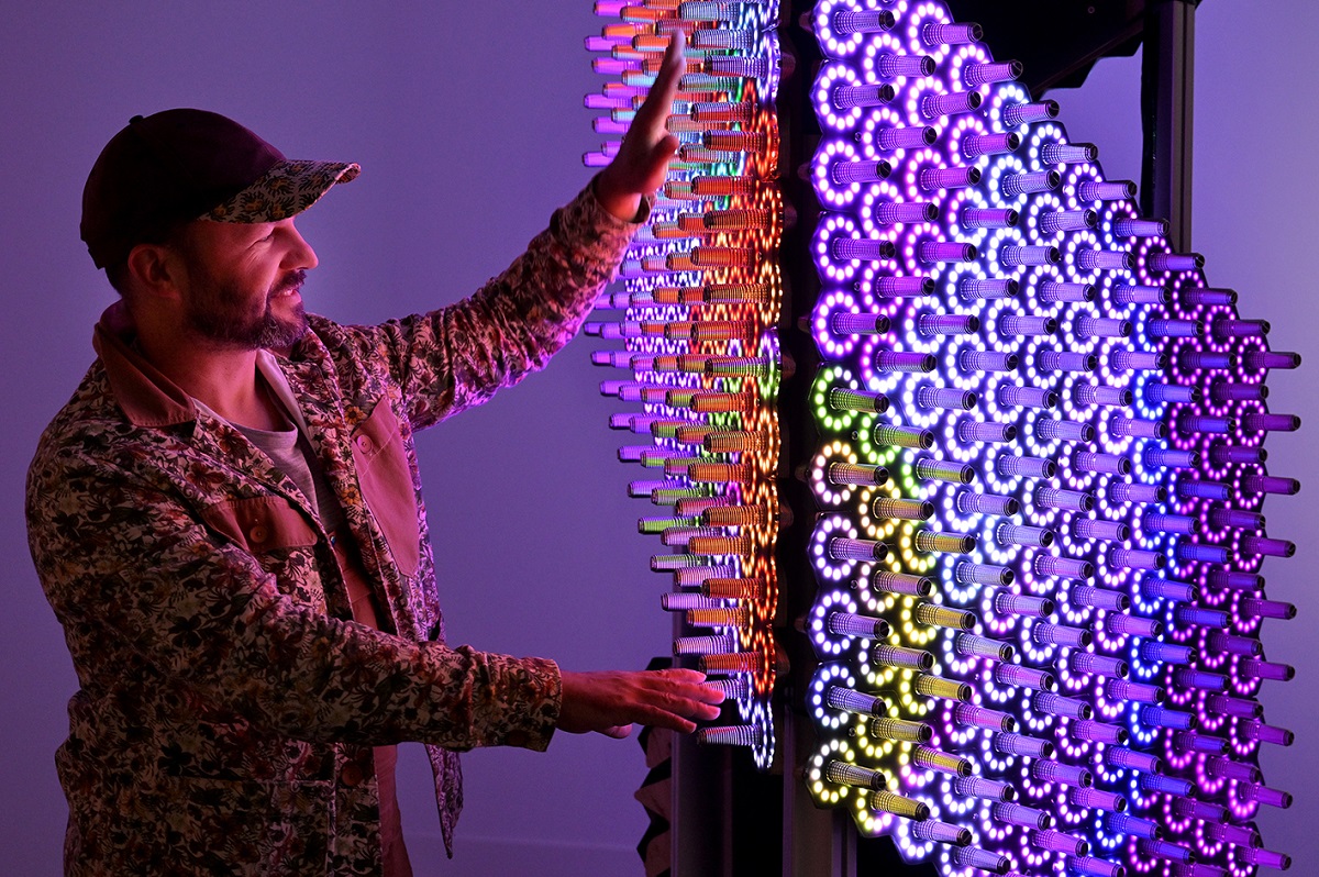 In der Aula der THI gibt es eine Pop-Up-Ausstellung von Robin Baumgarten zu sehen. Der in Berlin lebende Künstler vereint die Rollen von bildendem Künstler, Ingenieur und Game-Designer. Seine Werke verbinden künstlerische Installationen mit interaktiven Computerspielen und innovativer Technologie. Baumgarten schafft ästhetische Welten, die den Prinzipien der Konkreten Kunst folgen: Farben, Formen und Linien gehorchen ihren eigenen Gesetzen und eröffnen neue Perspektiven auf naturwissenschaftliche Phänomene. Hier verbindet sich Kunst und Wissenschaft zu einem stimmungsvollen Erlebnis.