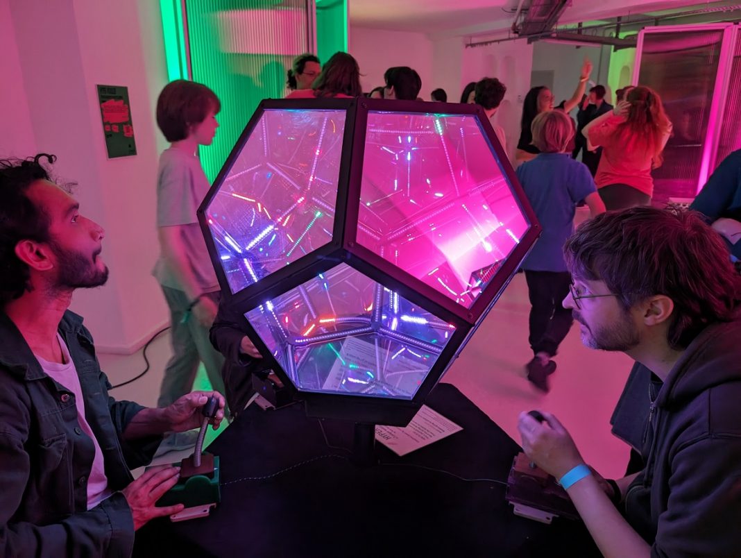 In der Aula der THI gibt es eine Pop-Up-Ausstellung von Robin Baumgarten zu sehen. Der in Berlin lebende Künstler vereint die Rollen von bildendem Künstler, Ingenieur und Game-Designer. Seine Werke verbinden künstlerische Installationen mit interaktiven Computerspielen und innovativer Technologie. Baumgarten schafft ästhetische Welten, die den Prinzipien der Konkreten Kunst folgen: Farben, Formen und Linien gehorchen ihren eigenen Gesetzen und eröffnen neue Perspektiven auf naturwissenschaftliche Phänomene. Hier verbindet sich Kunst und Wissenschaft zu einem stimmungsvollen Erlebnis.