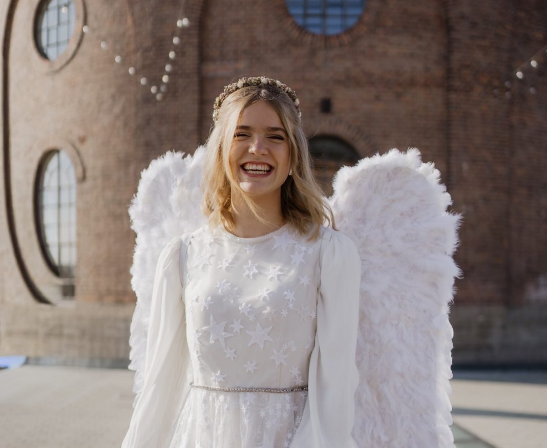 Ihr Kopfschmuck wurde von Julia Huber, der Besitzerin des Blumen- und Dekorationsladens Bellezza Flower angefertigt. Für das perfekte Styling des Christkindls sorgt das Friseurteam von King & Queen und perfekt in Szene gesetzt wurde das Christkindl beim Foto- und Videoshooting von Louis Hörner.