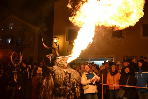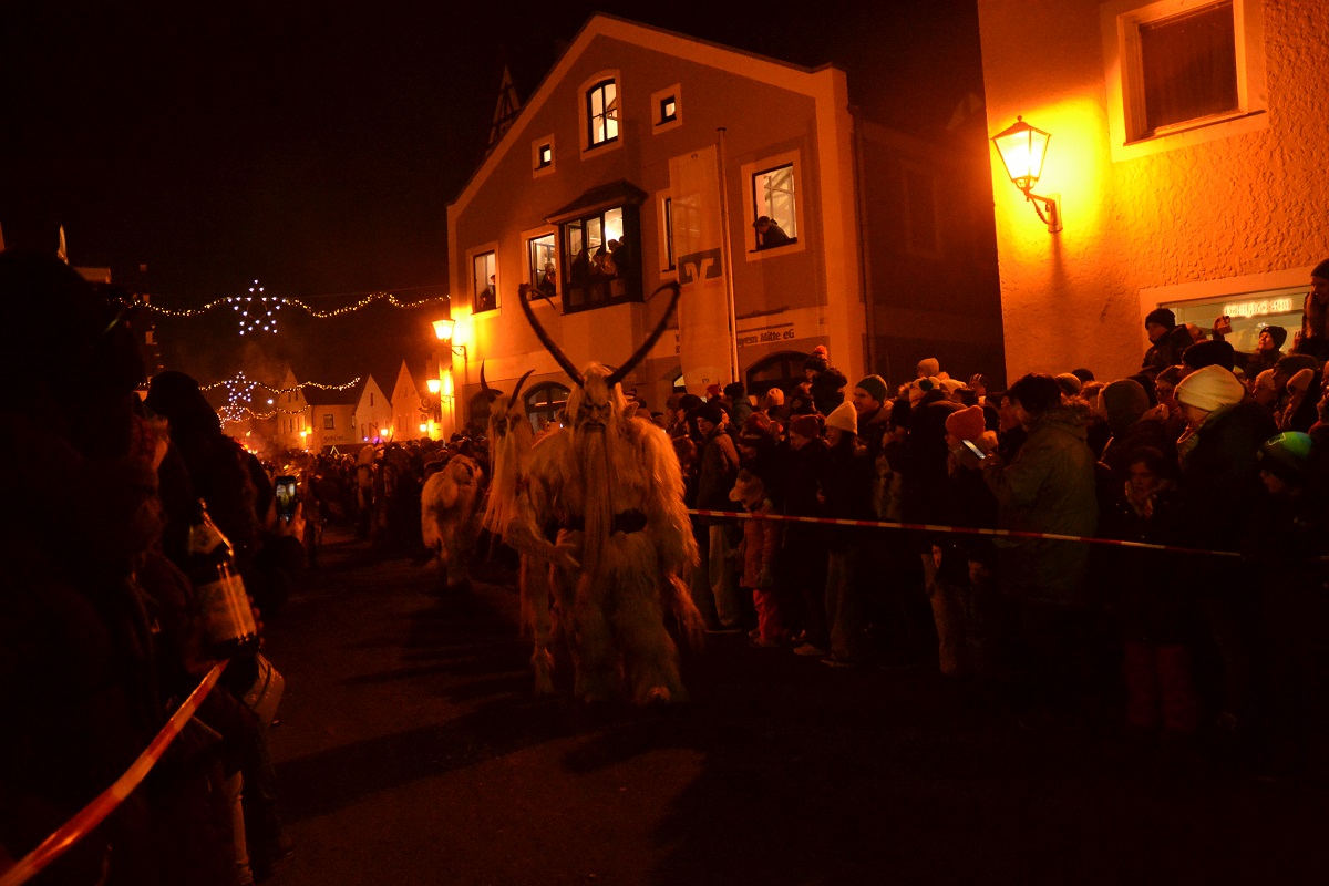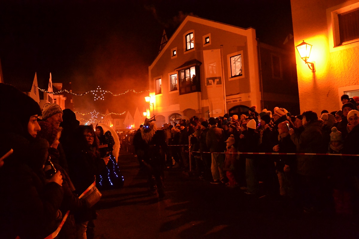 Der Ansturm war enorm – und wer einen guten Platz ergattern wollte, der stellte sich bereits eineinhalb Stunden (oder mehr) vor dem Beginn des Rauhnachtslaufs in Beilngries an die Strecke. An den Zuschauerinnen und Zuschauern zogen 39 Gruppen aus Deutschland, Österreich und Tschechien vorbei – und das bei Minusgraden über einen Zeitraum von mehr als zwei Stunden. Perchten mit schaurigen Masken, Hexen, Teufel, Engel und sogar der Nikolaus machten sich auf den Weg durch die Innenstadt – feurige Fontänen, rhythmisches Trommeln und brachiale Glockenklänge inklusive.