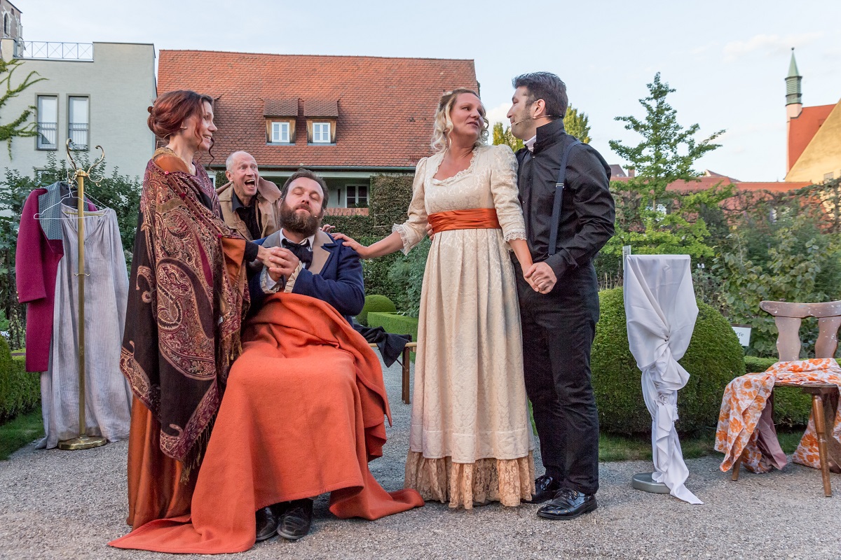Dass man jetzt ausgerechnet in Sachen „Location“ improvisieren muss, war keine willkommene Herausforderung. In der historischen Flankenbatterie im Klenzepark, in der das Kunst-Werk und damit auch die Improtheater-Bühne untergebracht ist, war man nun 20 Jahre lang zuhause. Doch seit einigen Monaten tropft es durch das Dach, es modert, die benachbarte Gastronomie hat dicht gemacht und damit auch die Toiletten: „Vielleicht sind wir die letzten Überlebenden, denn Kaninchen gibt es im Klenzepark ja auch nicht mehr“, scherzt Andreas Richter. Für die Shows ist man nun ins KAP94 ausgewichen und die Zeit wird zeigen, ob die Flankenbatterie jemals wieder bespielt werden wird. Wie gut, dass man für den runden Geburtstag schon eine Idee hatte…