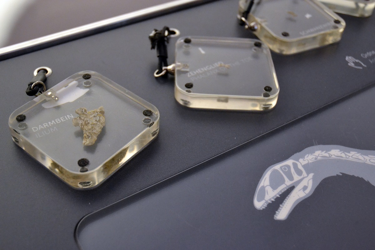 Die „Pocket Exhibition“ bietet nicht nur „Saurierknochen zum Anfassen“, sondern auch Einblicke in die Arbeit der Paläontologen. Interaktive Stationen ermöglichen es, Knochenfragmente zu untersuchen und Einblicke in die Lebenswelt des Sauriers zu gewinnen. Auch Prof. Dr. Oliver Rauhut und Alexandra Reutter kommen an einer Medienstation zu Wort.