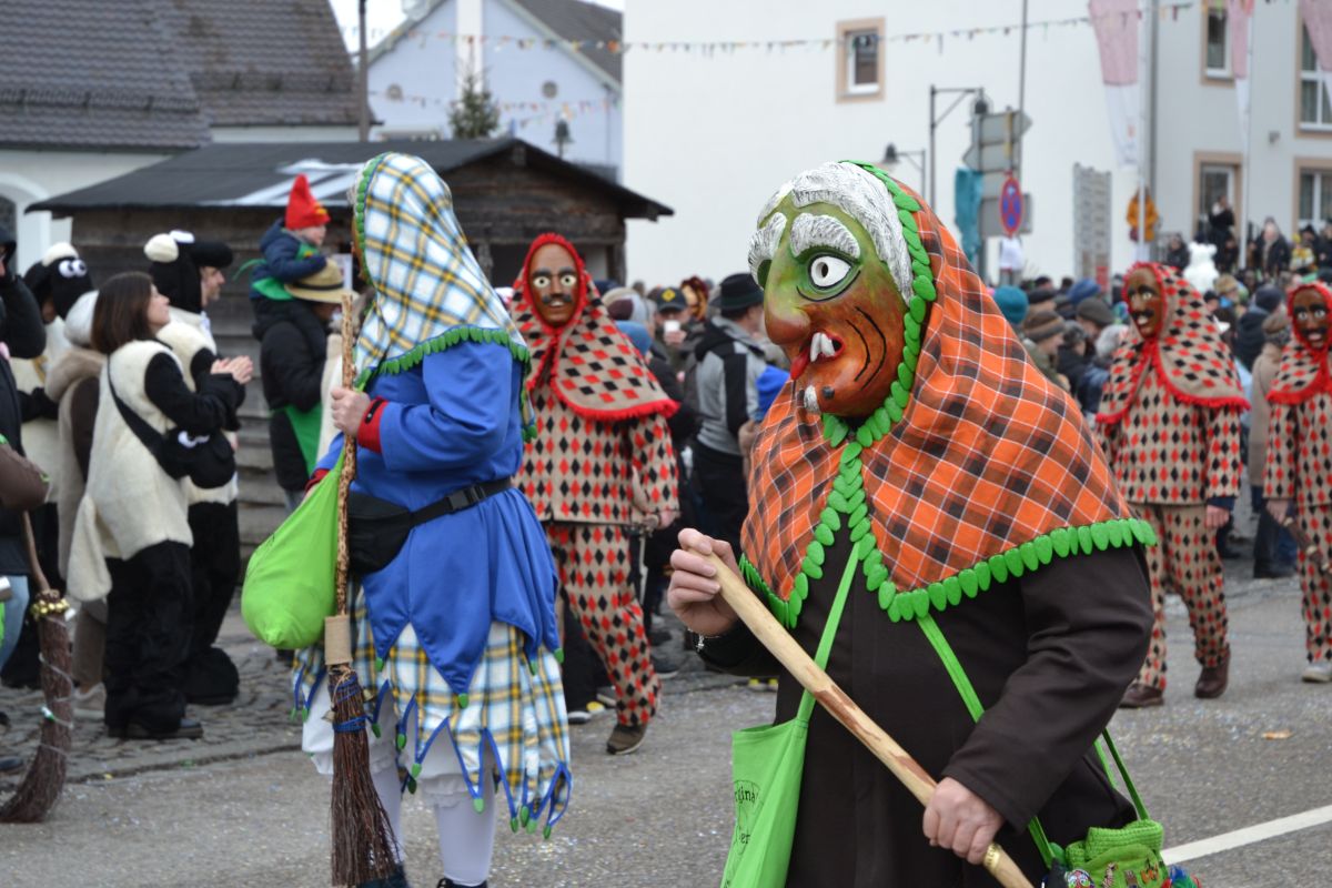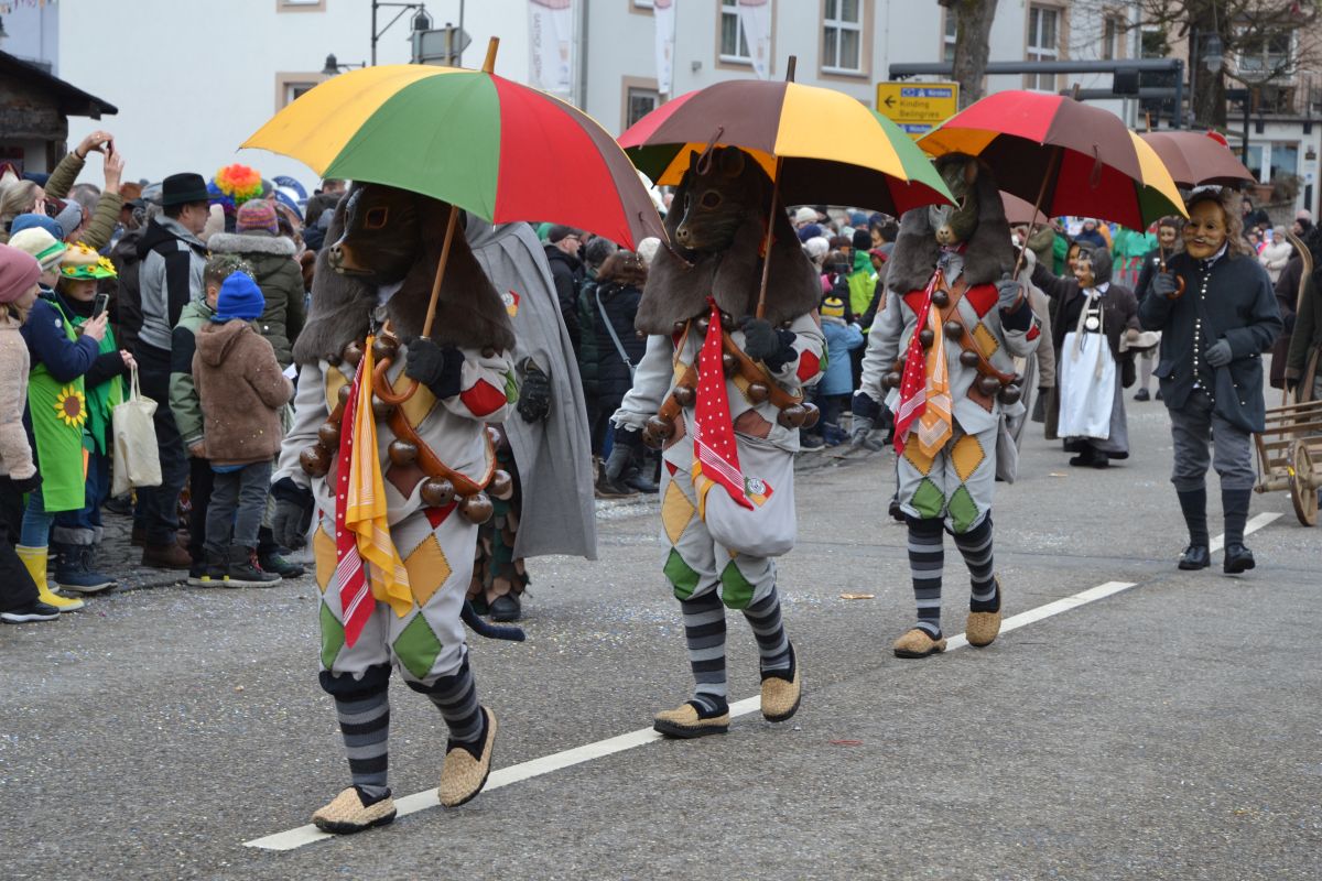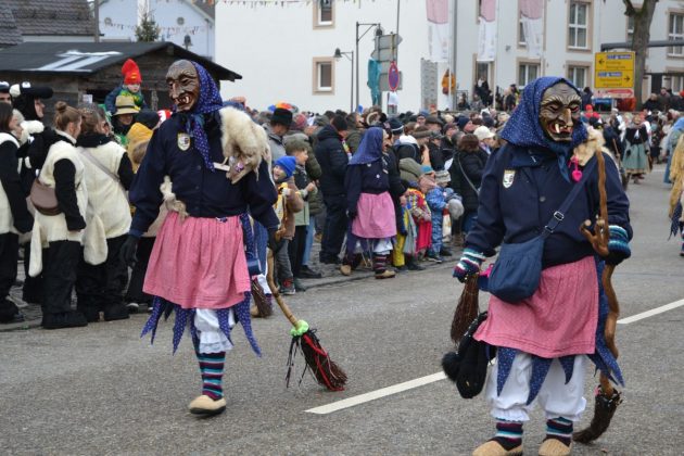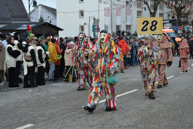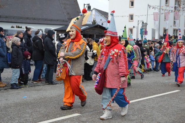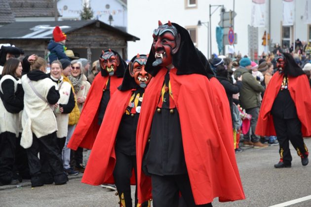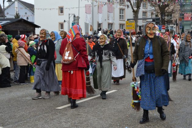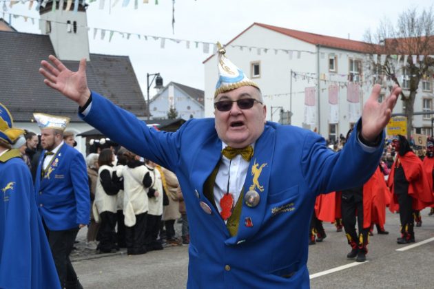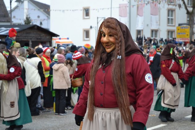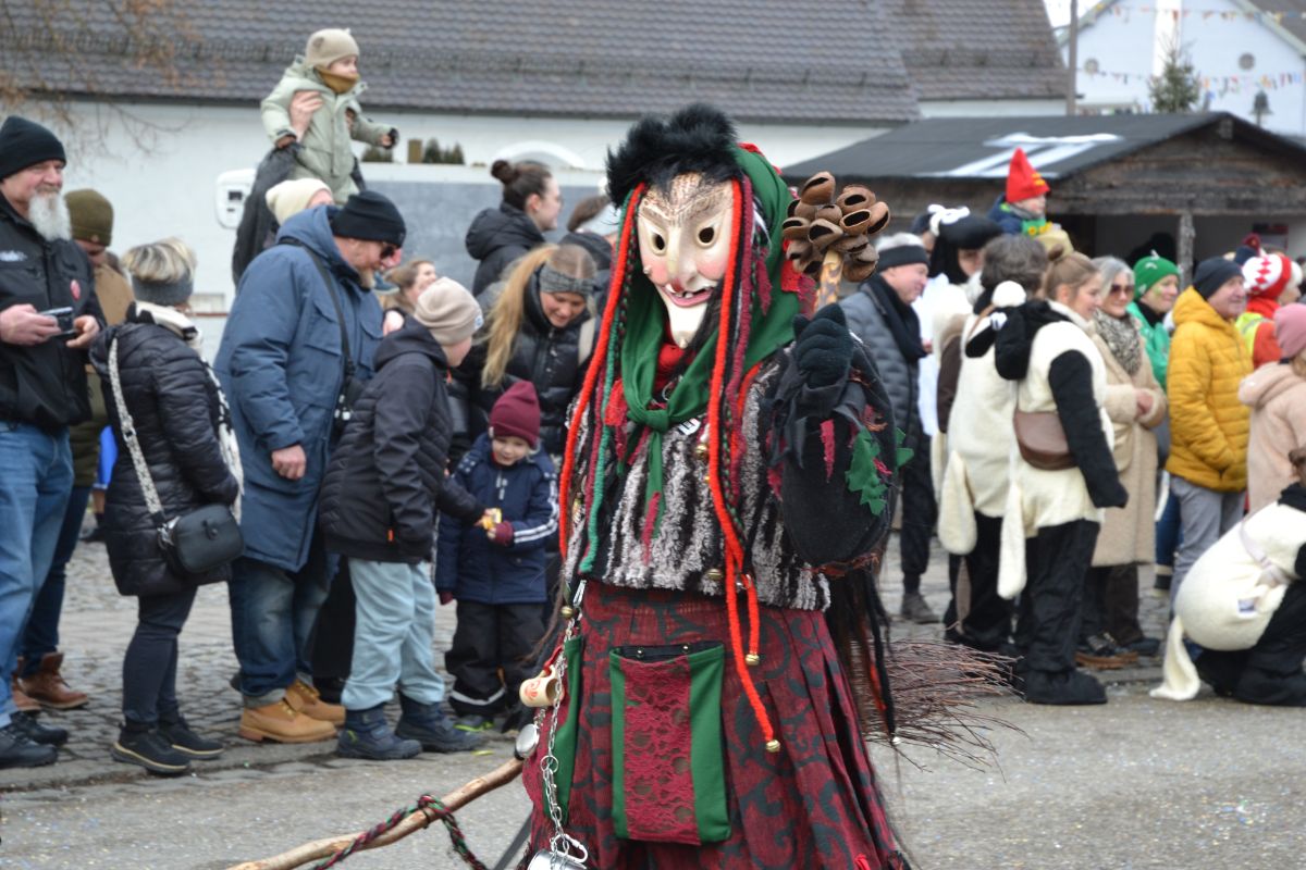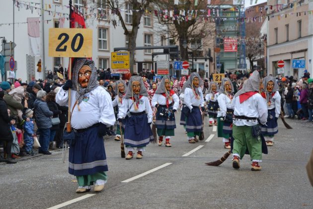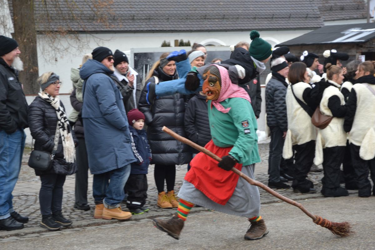 Den Besucherinnen und Besuchern wurden Informationen zur Strecke und den beteiligten Gruppen (den jeweiligen Schlachtruf inklusive) an die Hand gegeben – dazu erläuterten Sprecher und Sprecherinnen, wer da gerade unterwegs ist. Den Auftakt bildeten natürlich die eigenen Fasenickl, danach waren Fläggla Bätscher, Narren, Deifel, Bergweible, Hexen, Damische Ritter, Kirchamäus, Flecklasmänner und Butterweible unterwegs – zur großen Freude des Publikums. Am Rand des Umzugs erfuhr der geneigte Betrachter, dass es mit dem Narrentreffen ganz klein los ging und bei der Premiere nach 10 Minuten bereits der erste Pavillon kaputt gegangen war. Zum zweiten Mal vertraute man dieses Jahr daher auf eine eigens aufgebaute Hütte auf dem Marktplatz, die als „Narren-Hauptquartier“ dient und noch den gesamten Fasching stehen bleibt. Im Übrigen hat das Narrentreffen auch schon seine völkerverbindende Wirkung bewiesen: ein Fasenickl aus Kipfenberg hat inzwischen eine Hochburg-Häxe aus Emmendingen geehelicht. (ma)