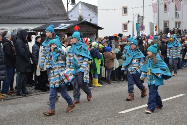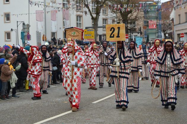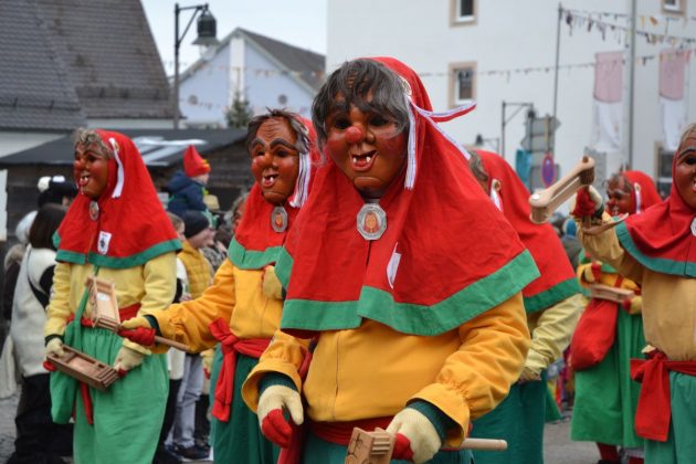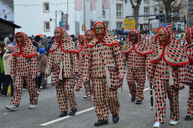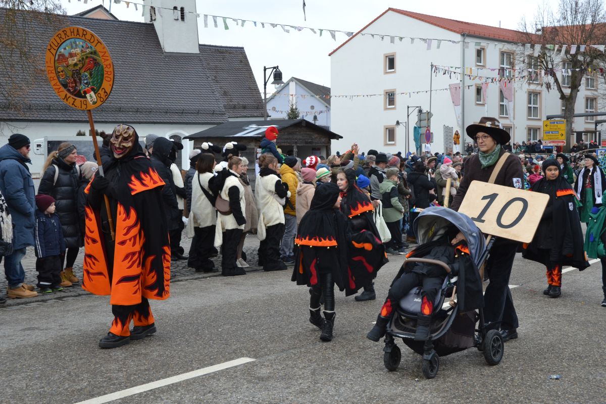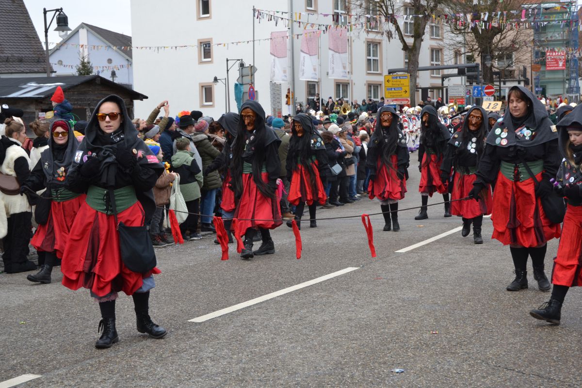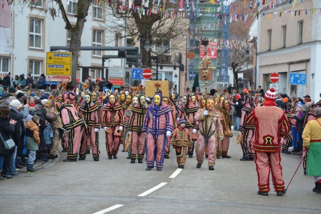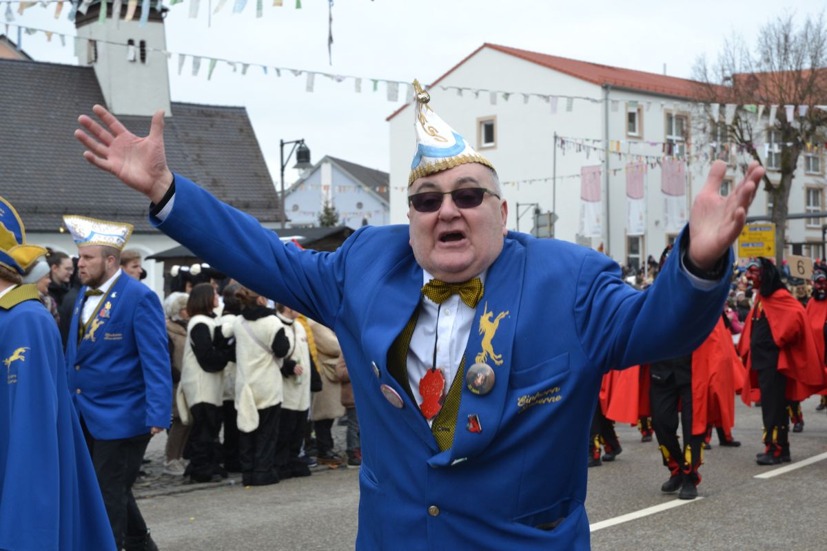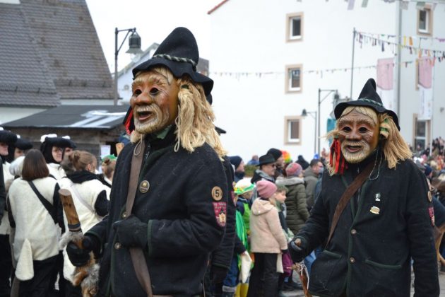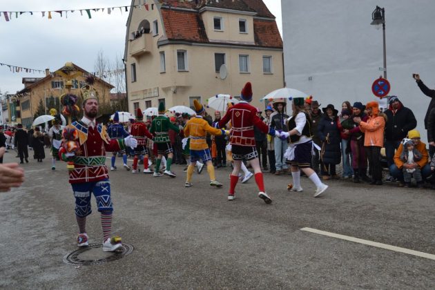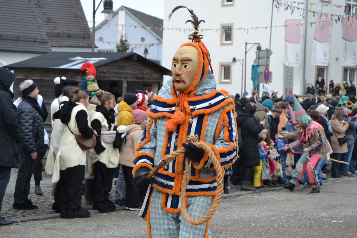 Den Besucherinnen und Besuchern wurden Informationen zur Strecke und den beteiligten Gruppen (den jeweiligen Schlachtruf inklusive) an die Hand gegeben – dazu erläuterten Sprecher und Sprecherinnen, wer da gerade unterwegs ist. Den Auftakt bildeten natürlich die eigenen Fasenickl, danach waren Fläggla Bätscher, Narren, Deifel, Bergweible, Hexen, Damische Ritter, Kirchamäus, Flecklasmänner und Butterweible unterwegs – zur großen Freude des Publikums. Am Rand des Umzugs erfuhr der geneigte Betrachter, dass es mit dem Narrentreffen ganz klein los ging und bei der Premiere nach 10 Minuten bereits der erste Pavillon kaputt gegangen war. Zum zweiten Mal vertraute man dieses Jahr daher auf eine eigens aufgebaute Hütte auf dem Marktplatz, die als „Narren-Hauptquartier“ dient und noch den gesamten Fasching stehen bleibt. Im Übrigen hat das Narrentreffen auch schon seine völkerverbindende Wirkung bewiesen: ein Fasenickl aus Kipfenberg hat inzwischen eine Hochburg-Häxe aus Emmendingen geehelicht. (ma)