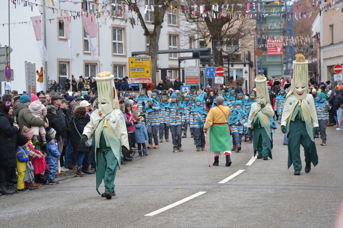 Handgeschnitzte Masken, traditionelle Kostüme, schwungvolle Guggenmusik – der große Narrensprung in Kipfenberg war ein Leckerbissen für alle, die sich für Faschingsbrauchtum und die Schwäbisch-alemannische Fastnacht begeistern. 29 Gruppen sind beim „Narrensprung“, also dem großen Umzug am Sonntag Nachmittag, durch den Markt gezogen. Es war das fünfte mal, dass der Kulturverein „Die Fasenickl“ (feiert dieses Jahr sein 70-jähriges Bestehen) ein solches Narrentreffen (es dauerte das ganze Wochenende) auf die Beine gestellt hat.
