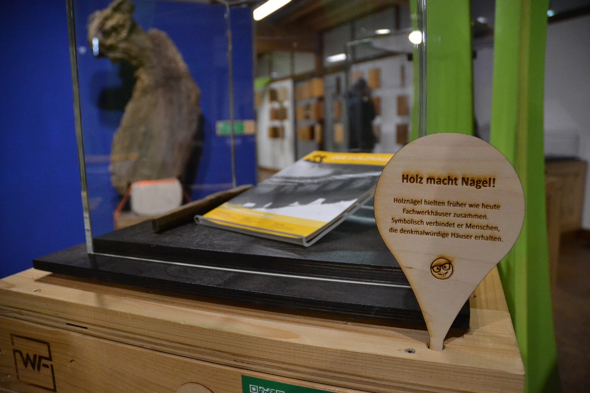 Jedes Objekt in der Ausstellung ist mit einem QR-Code und einen NFC-Chip ausgestattet, so dass man über das Smartphone die entsprechenden Informationen zum Nachlesen oder Anhören abrufen kann. Aber auch ein gedruckter Museumsführer kann genutzt werden. Und wer möchte, kann auch eigene Holzobjekte mitbringen. An der Rezeption wird ein entsprechender Leihvertrag abgeschlossen – nach Ende der Schau kann es wieder angeholt werden. So sind schon etliche Kuriositäten in der Ausstellung, die wächst und wandert, gelandet. „Dieser stetig wachsende Wald ist nun im Haus im Moos angekommen und lädt dazu ein, das Thema Wald und Holz in all seinen Facetten mit allen Sinnen zu erleben,“ erklärte Museumsleiterin Joana Mylek.