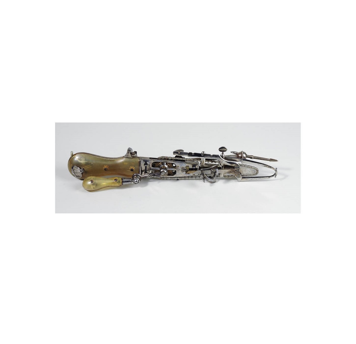 Technisch interessierte Besucher/-innen bleiben in der Alten Anatomie oft fasziniert vor einer Vitrine stehen, in der die Evolution der chirurgischen Säge gezeigt wird. Vor allem ein Exemplar hat es ihnen hierbei angetan: das Osteotom, eine raffiniert konstruierte, medizinische Kettensäge mit Handbetrieb. Die Geschichte dieses beeindruckenden Instruments führt zurück in das 19. Jahrhundert zu dem Instrumentenmacher Bernhard Heine in Würzburg.