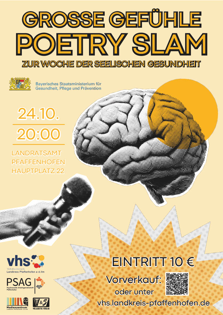 Am Freitag, 24. Oktober, ab 20 Uhr wird der Große Sitzungssaal im Landratsamt Pfaffenhofen zum Schauplatz eines besonderen Poetry Slams. Unter der Moderation von Pascal Simon präsentieren Künstlerinnen und Künstler aus ganz Deutschland ihre selbst geschriebenen Texte rund um das Thema „Große Gefühle“.