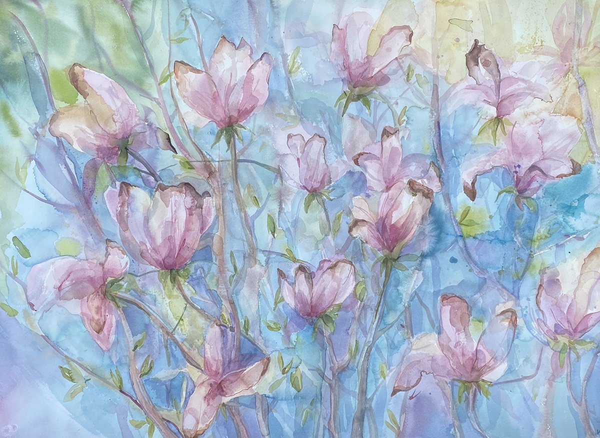 Über Jahrhunderte hinweg haben Künstler Blumen als Motive für ihre Werke verwendet. Je nach Epoche und Kultur kann eine bestimmte Blume Reinheit, Liebe oder Dekadenz symbolisieren – oder, wie beispielsweise die Impressionisten, wählen viele Künstler Blumen, die für sie eine persönliche Bedeutung haben. Shoshanna Ahart, Kuratorin der Ausstellung Die Sprache der Blumen, sieht in den floralen Motiven Wiedergeburt, Erneuerung und das Erwachen aus dem Winterschlaf. Frau Ahart hat eine faszinierende Ausstellung mit Aquarellen von Genya Krikova und Glaskunst von Magdalena Paukner zusammengestellt.