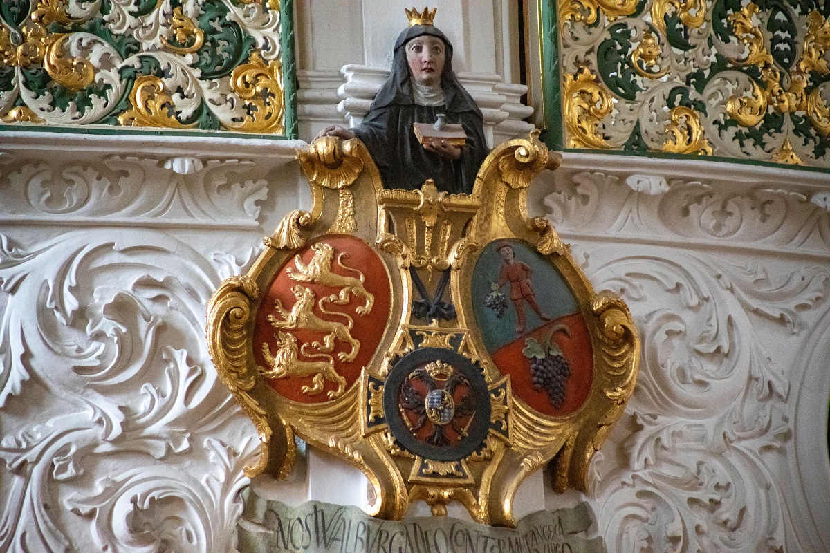 Die heilige Walburga wurde um 710 in Wessex/Südengland geboren. Wie ihre Geschwister Willibald und Wunibald sowie ihr Verwandter Bonifatius, brach sie im 8. Jahrhundert nach Deutschland auf, um dort die christliche Botschaft zu verkünden. Als Wunibald im Jahr 761 in Heidenheim starb, übernahm Walburga als Äbtissin die Leitung des dortigen Benediktinerklosters und setzte die Missionsarbeit fort. Sie starb der Überlieferung nach am 25. Februar 779 und wurde in der Heidenheimer Klosterkirche beigesetzt. Etwa 100 Jahre später wurden ihre Reliquien nach Eichstätt übertragen. Die Gründung des dortigen Klosters geht auf das Jahr 1035 zurück. (pde)